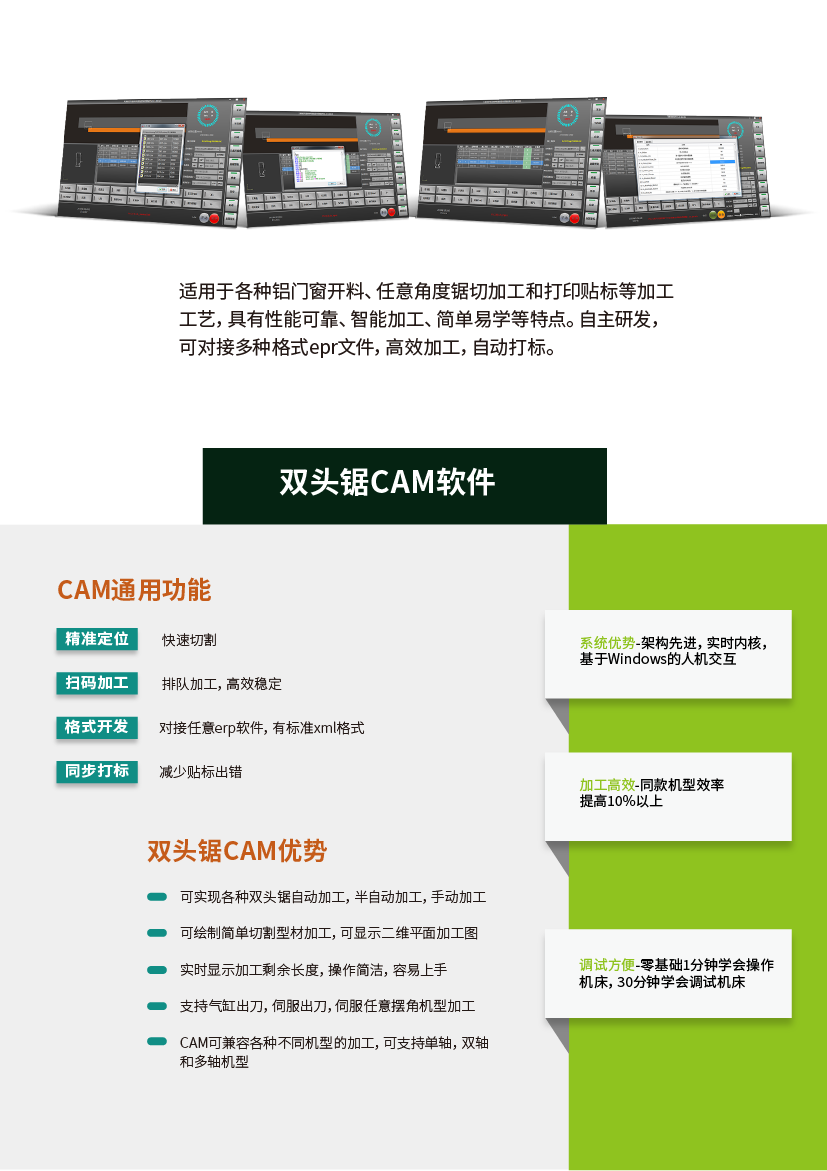 Han’s ADSCam鋁合金雙頭鋸專業(yè)CAM軟件,可無(wú)縫對(duì)接任意ERP軟件,幫助客戶實(shí)現(xiàn)無(wú)人工智能掃碼加工,出錯(cuò)率更低,發(fā)貨速度更快。